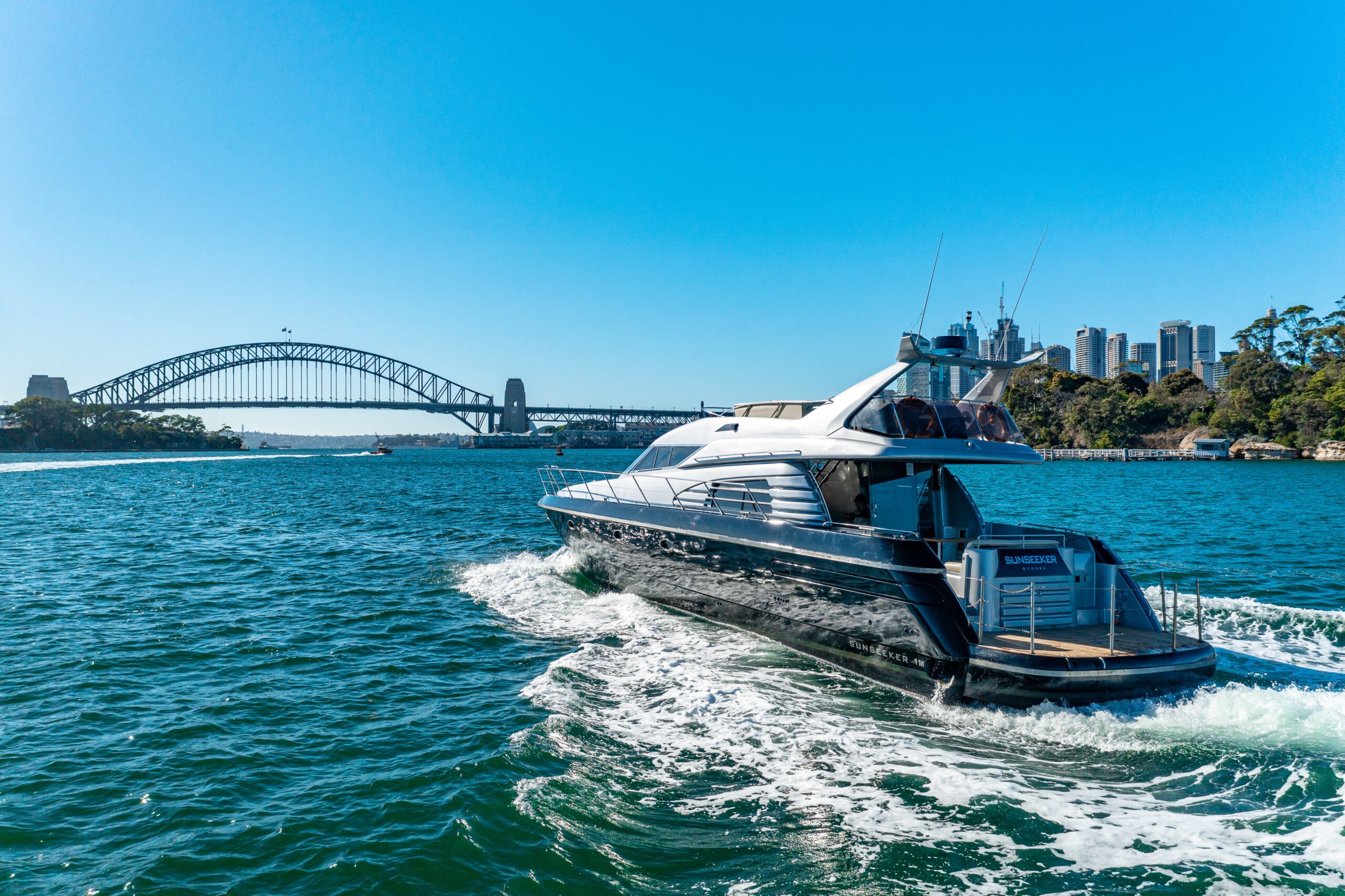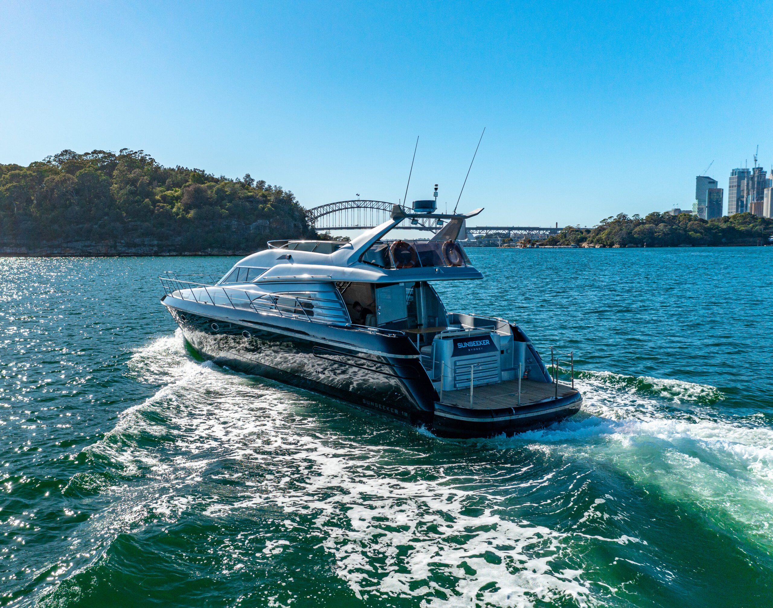 Sunseeker is a 62ft Sunseeker Cruiser suitable for all types of events on Sydney Harbour. She is able to accommodate 30 passengers. Her luxury internal area and open back deck gives you and your guests an amazing tour on Sydney Harbour. Sunseeker offers amazing catering and BYO services on board.